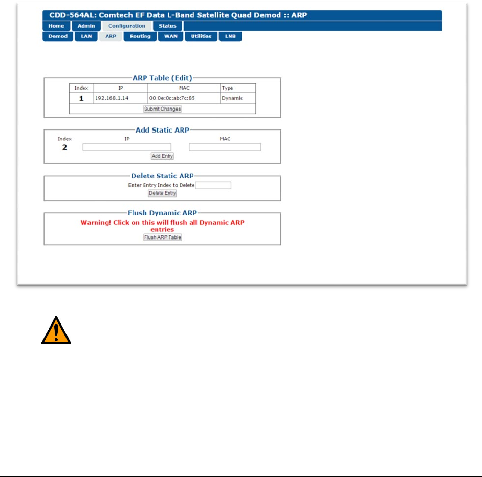 Use this page to see or edit the unit’s ARP parameters.