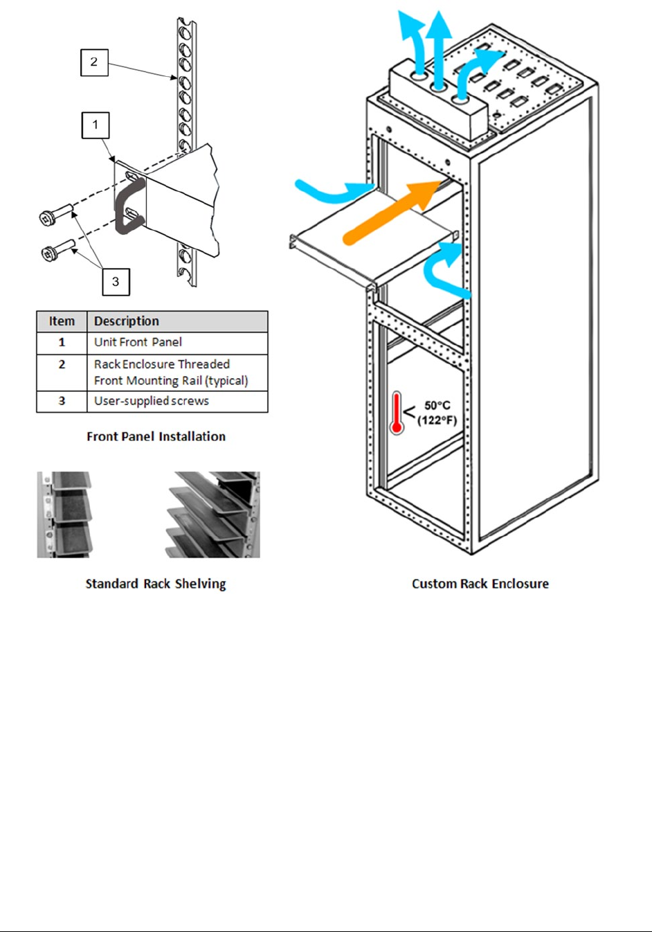 • User-supplied screws to secure the front panel to the rack enclosure threaded front installation