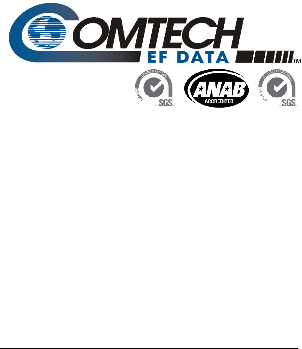 Copyright © Comtech EF Data, 2012. All rights reserved. Printed in the USA. Comtech EF Data, 2114 West 7th Street, Tempe, Arizona 85281 USA, 480.333.