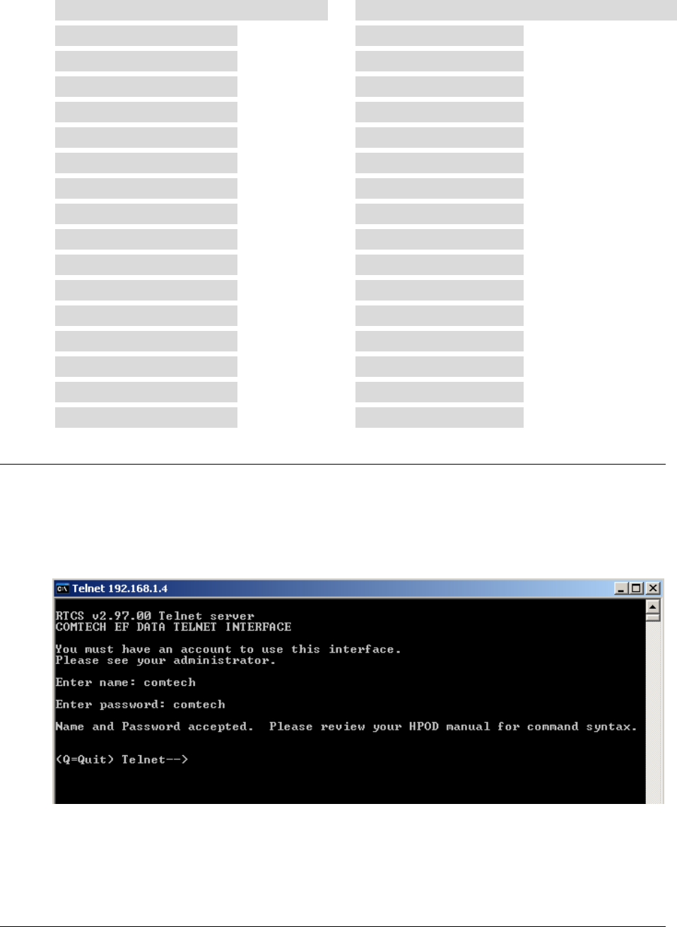 The HPOD has a Telnet interface for the equipment M&C operations. Log in to the Telnet
