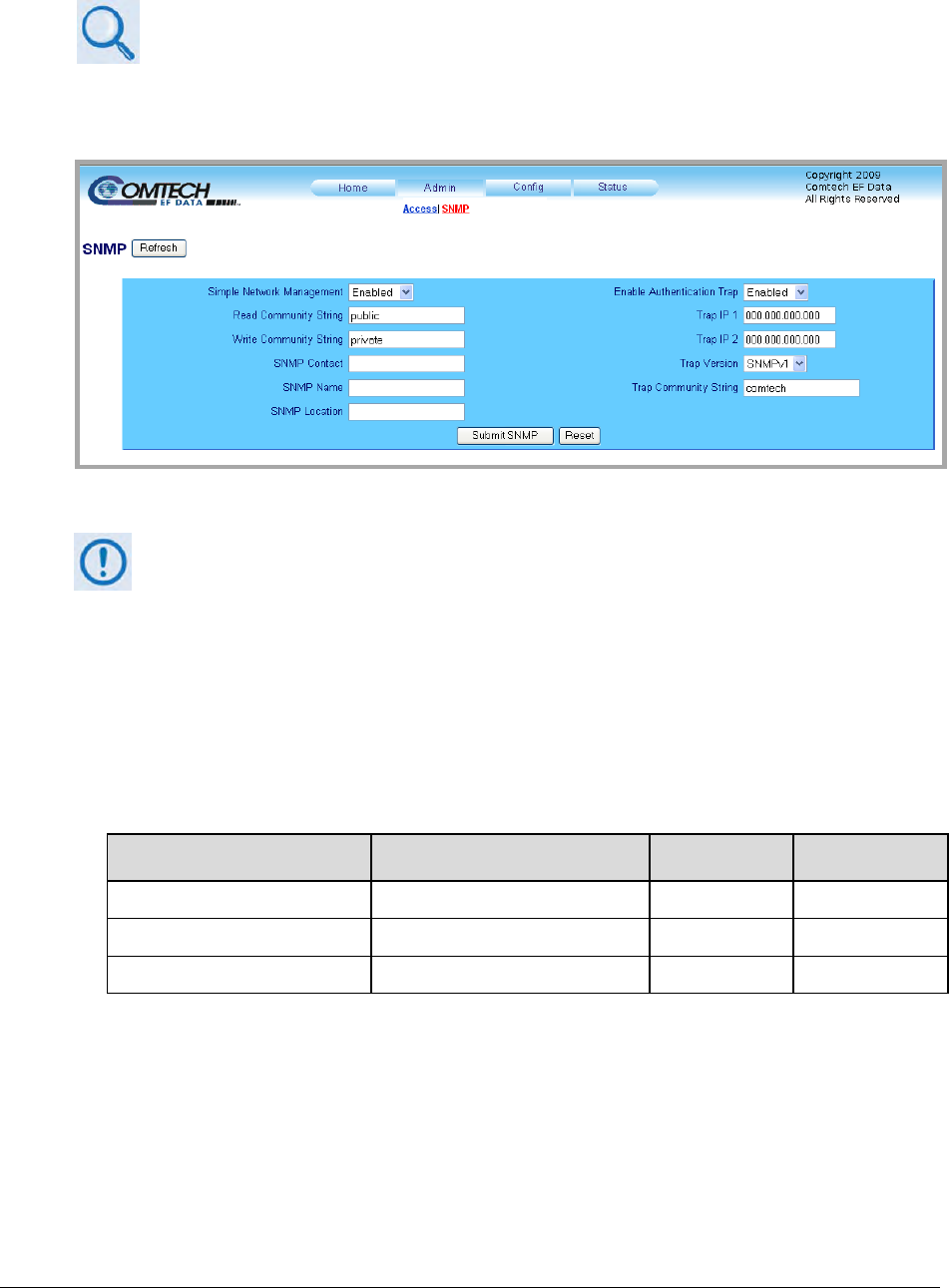 • Read / Write / Trap Community Strings – These defaults, set at the factory, may be changed