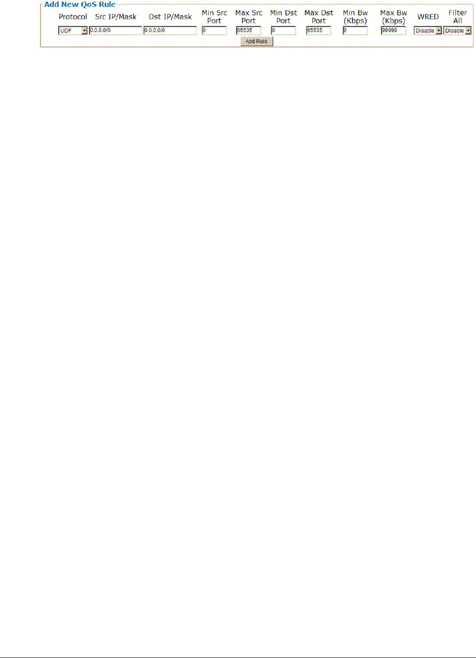 o Any packet that does not meet a QoS Rule is assigned to the Default Rule and is